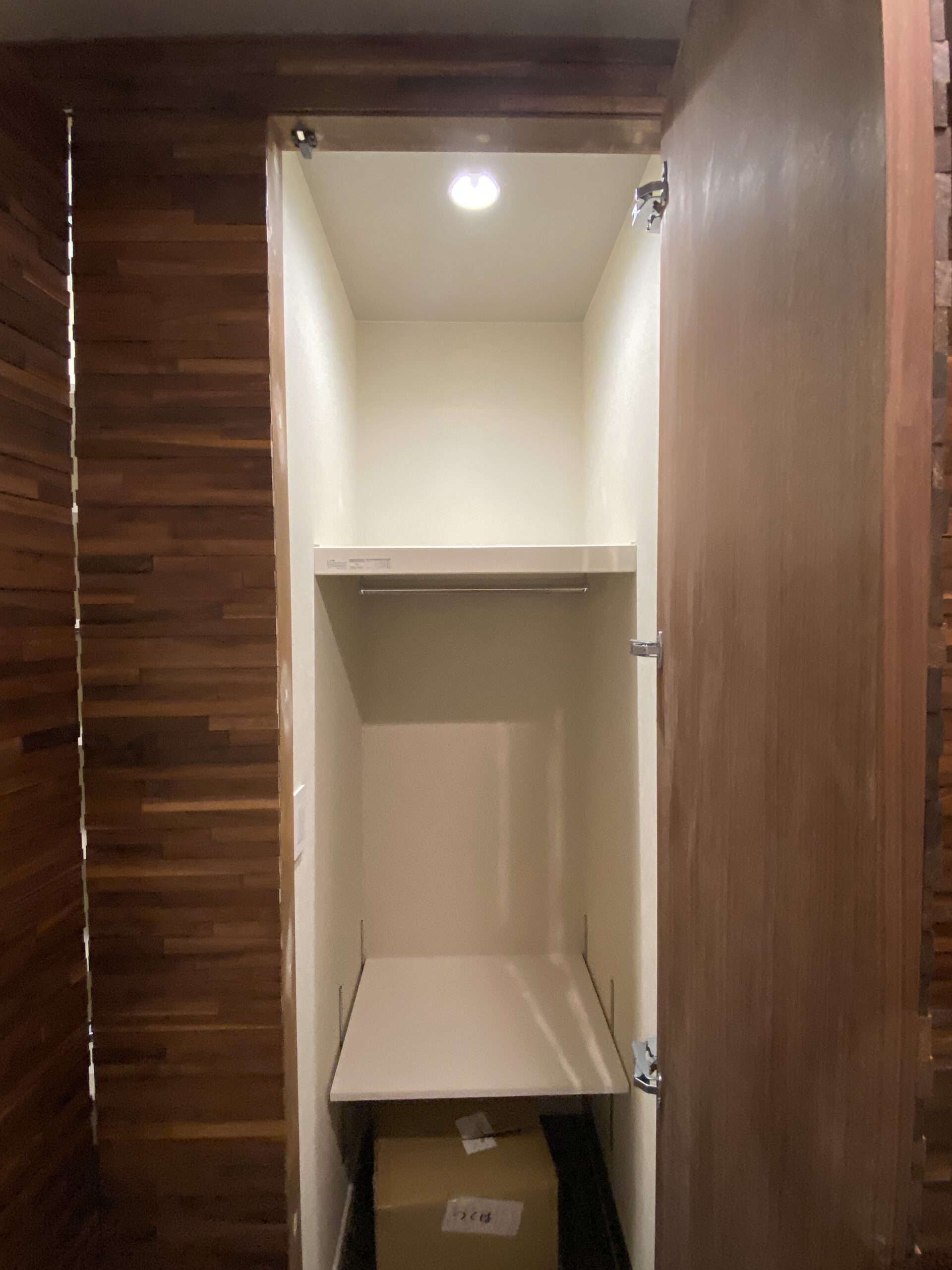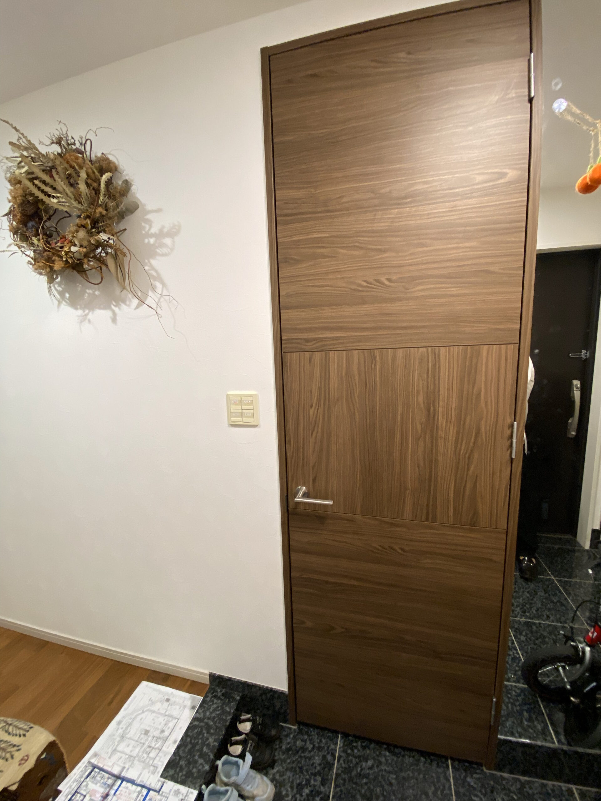 もともとは半坪くらいの大きさだったのですが、こちらを半分で仕切りシューズクロークと納戸に分けました。