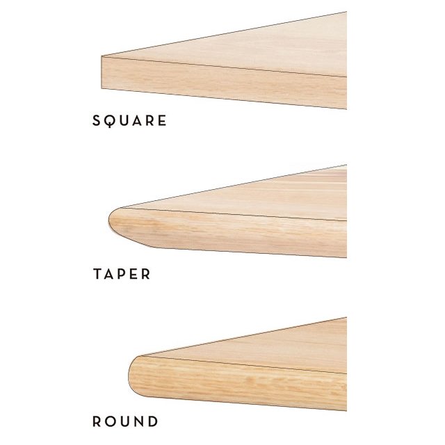 水戸店ではすべての脚、エッジの加工をご覧いただけるように展示を取り揃えております。