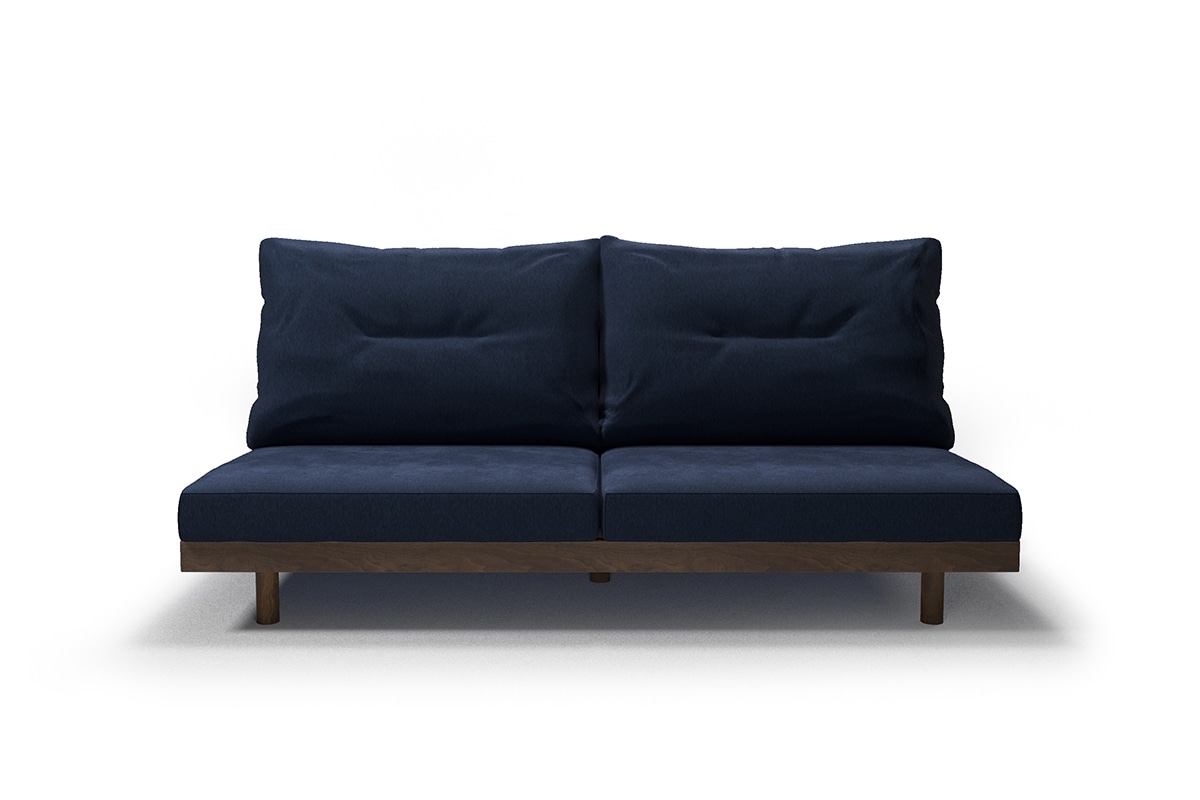 デニッシュソファをベースにハイバックの背クッションへ再構築されたソファ。