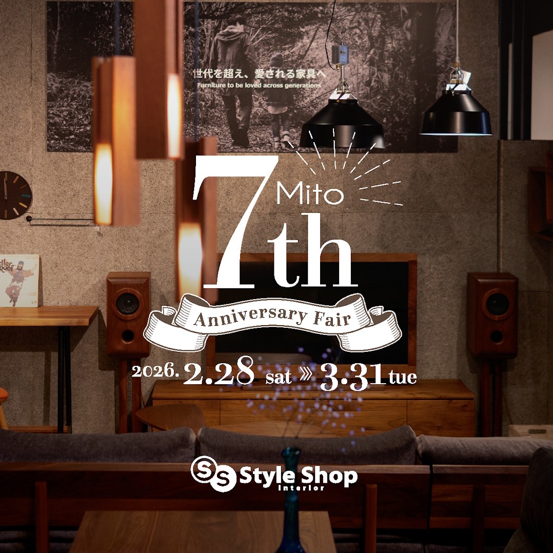 日頃よりご愛顧頂いている皆様に感謝の気持ちを込めて「Style Shop MITO 7th Anniversary Fair」を2月28日(土)から3月31日(火)までスタイルショップ水戸店・つくば店にて開催いたします。